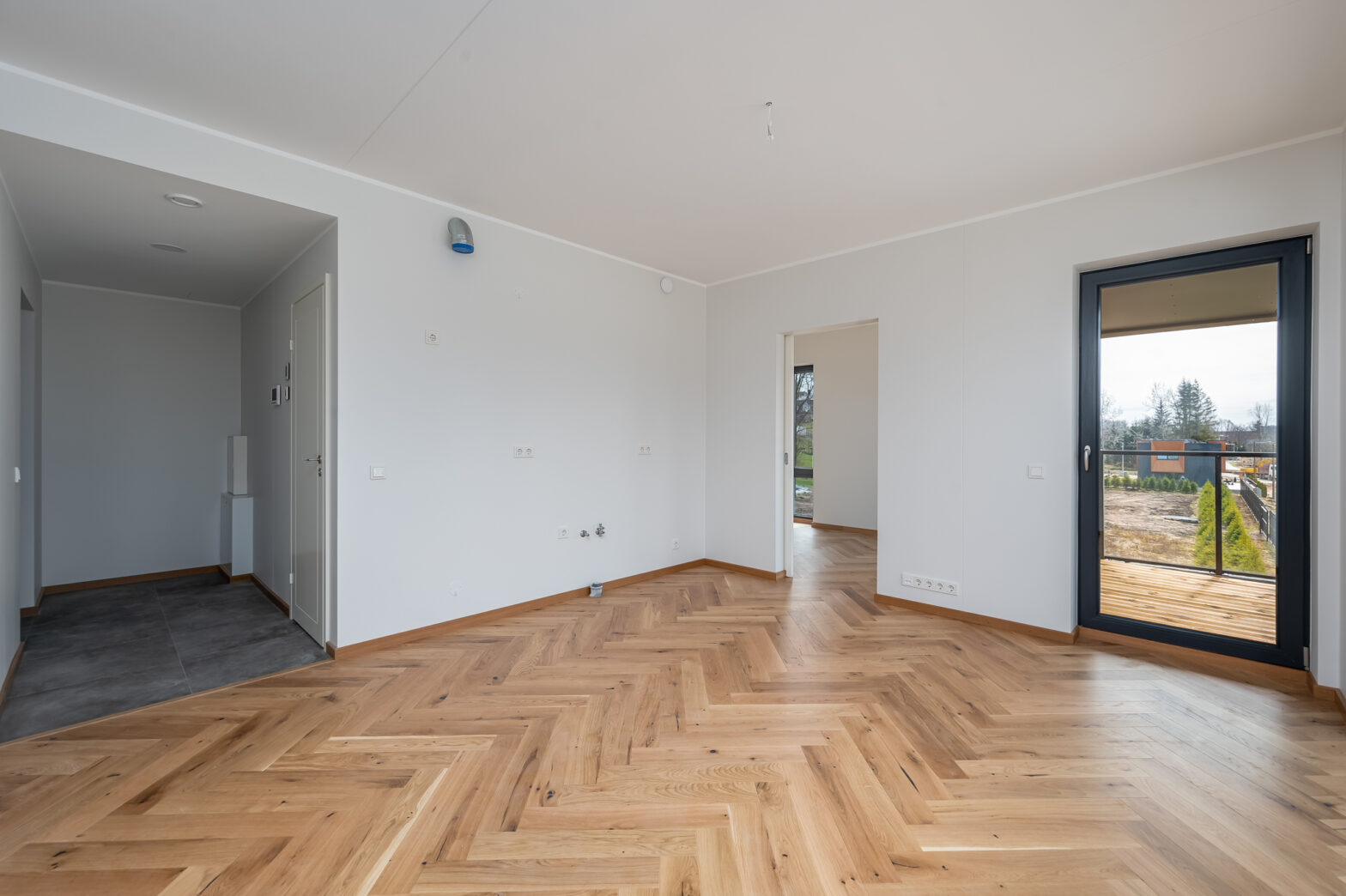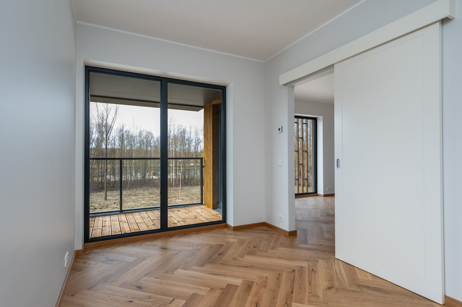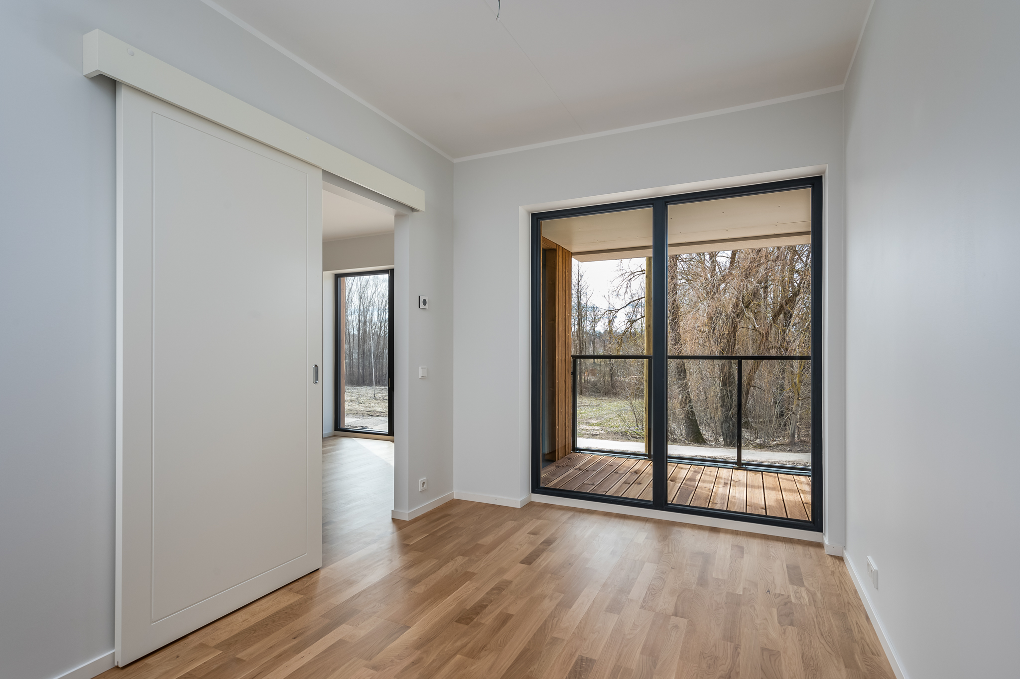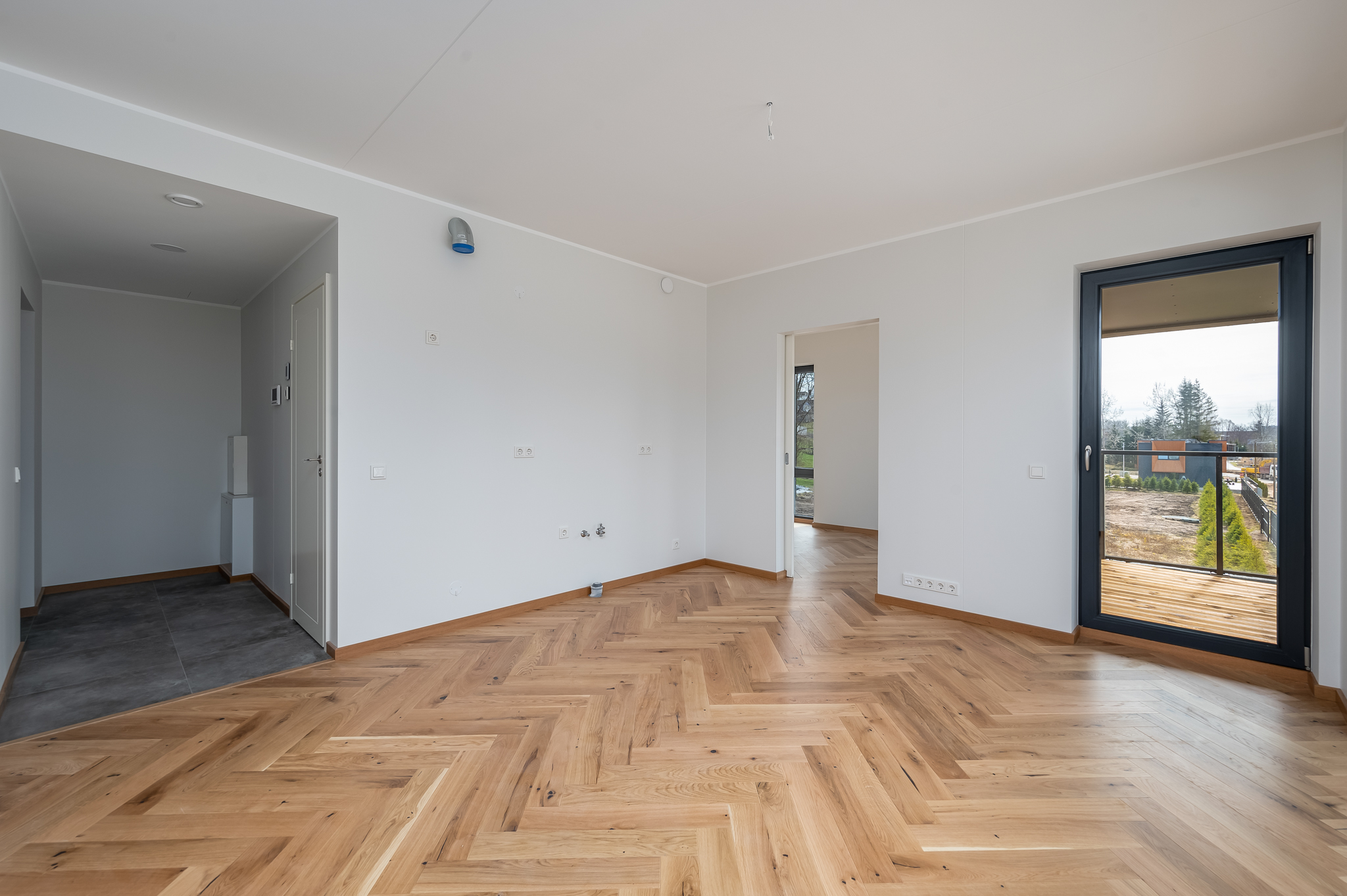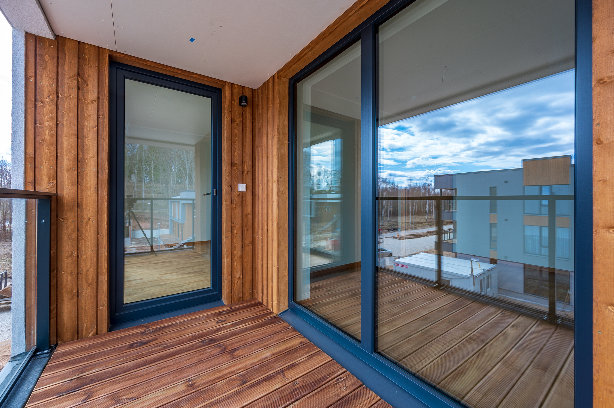 1. korruse korteritel on puidust terrassid ning majade 75 ja 81 2. ja 3. korruse korteritel on rõdud. Rõdude piirded on täisklaasist ning tumehallis raamis. Rõdud rajatakse kergkonstruktsioonil terastalade vahele kinnitatud puitprussidele, mis on kaetud veekindla puitplaadi ja SBS-kattega. Rõdu põrandatele paigaldatakse eraldiseisvalt puitlaudis.