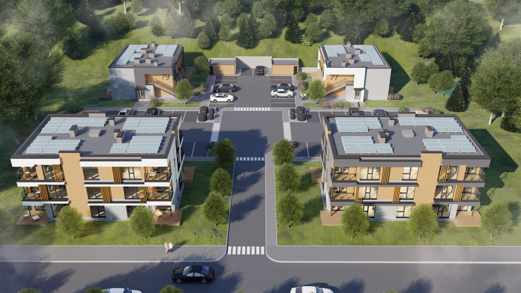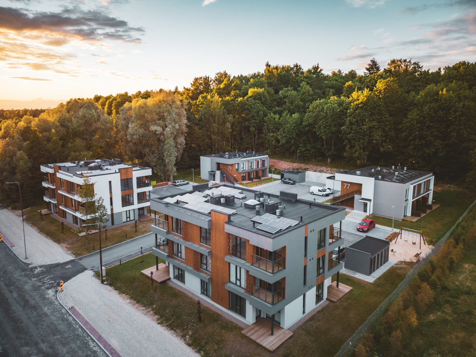 Hoone soojavarustus on kaugkütte baasil vesipõrandaküttena kogu eluruumi ulatuses. Hoonetes 77 ja 79 on majapõhine tsentraalne soojustagastusega ventilatsioonisüsteem, hoonetes 75 ja 81 on korteripõhine soojustagastusega ventilatsioonisüsteem. Korterite elektriarvestid paiknevad kilbiruumis. Korteris paikneb korteri elektrikilp. Paigaldatud on pistikupesad ja lülitid, san. ruumidesse ja esiku ripplagedessse on paigaldatud süvistatud LED-valgustid. Korterisse on toodud optilised andmesidekaablid. Iga TV vaatamiskoha juurde on toodud andmesidepesad. Energiatõhusus tagatakse tõhusate tehnosüsteemide kasutamisega nagu ventilatsiooni soojustagastus. Sisekliima on projekteeritud nõuetekohaselt optimaalse sisetemperatuuri ja õhuvahetusega. Hoone on projekteeritud A-energiaklassi ning hoonete katusel kasutatakse päikesepaneele. Päikeseenergiast toodetav elekter suunatakse hoone kasutusse ning mitte tarbitav elektrienergia müüakse teenusepakkuja üldelektrivõrku. Olmejäätmete liigiti kogumiseks paigaldada kinnistule. Välisalal annavad hubasust ja lisandväärtust pollarvalgustid, 2 mänguväljakut ja sadeveekogumise süsteem.