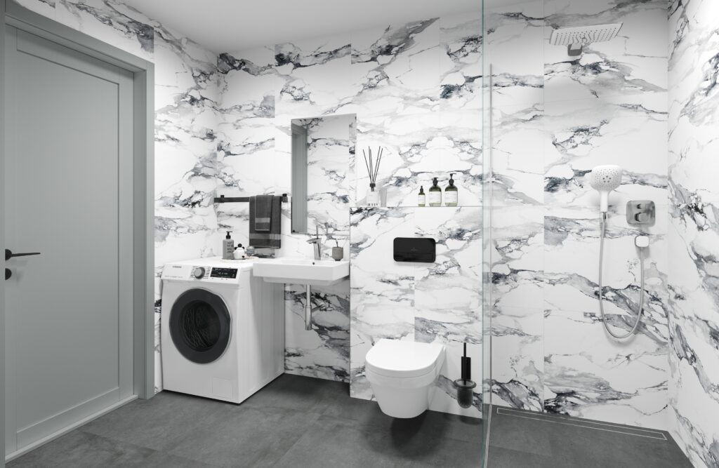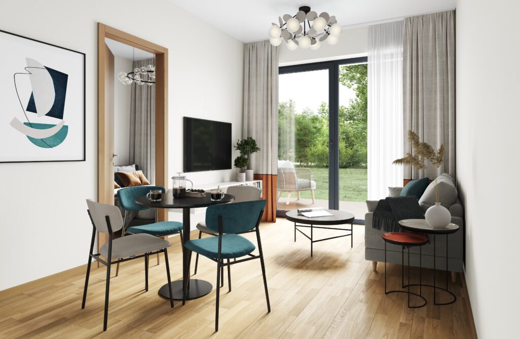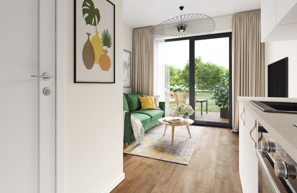 Korterites on põrandalt algavad kõrged ning avarad PVC raamis kolmekordse kirka paketiga aknad, mille raamid on seest ja väljast tumehalli viimistlusega. Hoonete siseviimistlus on kvaliteetne – kasutatakse suureformaadilisemaid keraamilisi plaate ning kvaliteetset Villeroy Bochi keraamikat ja Hansgrohe santehnikat. Trepikodade sissepääsudele paigaldada video-fonoseadmed, mis võimaldavad kahepoolset sidet igas korteris asuvasisepaneeliga ning välisukse avamist korterist. Uste avamine oma inimeste poolt toimub koodiga või puutenööbiga.
