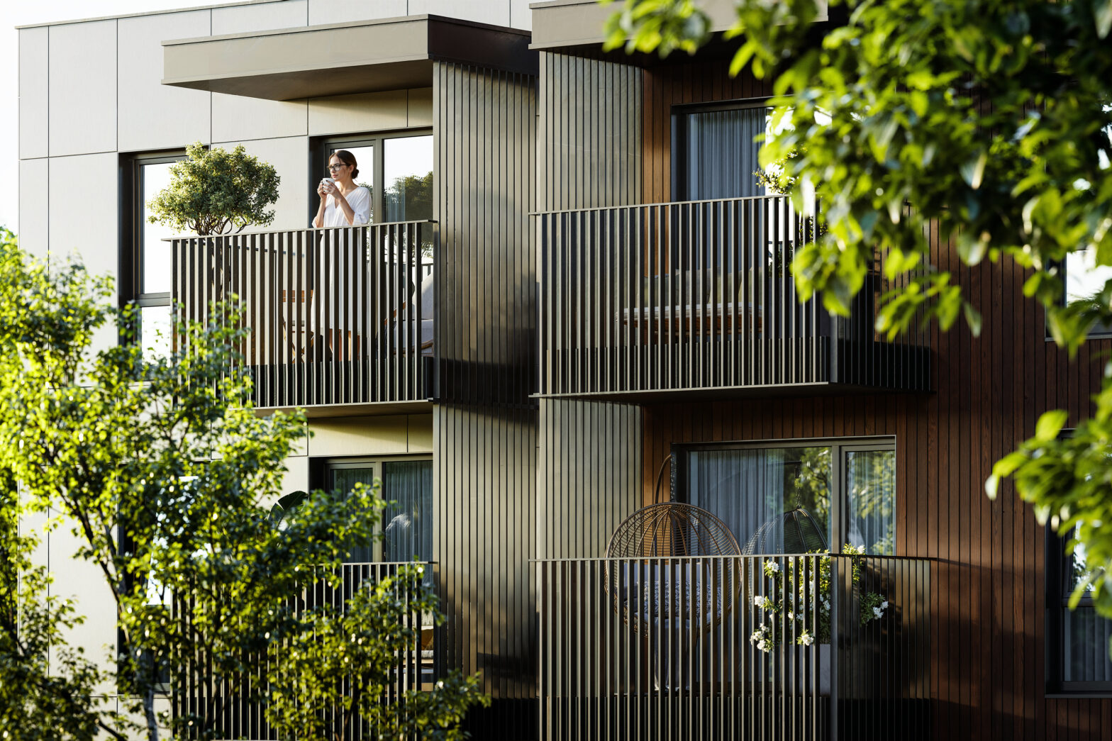 Kvindi Kodude arhitektuur ühendab kaasaegse funktsionaalsuse ja ajatult selge joone. Heledad ja tumedad fassaadidetailid põimuvad loodusliku puiduga, luues soojalt elegantse ilme. Liigendatud mahud, kõrged aknad ja rõdud annavad hoonele iseloomu ja avarust – tulemuseks on kodu, mis kestab ajas ja sulandub loomulikult oma ümbrusesse.