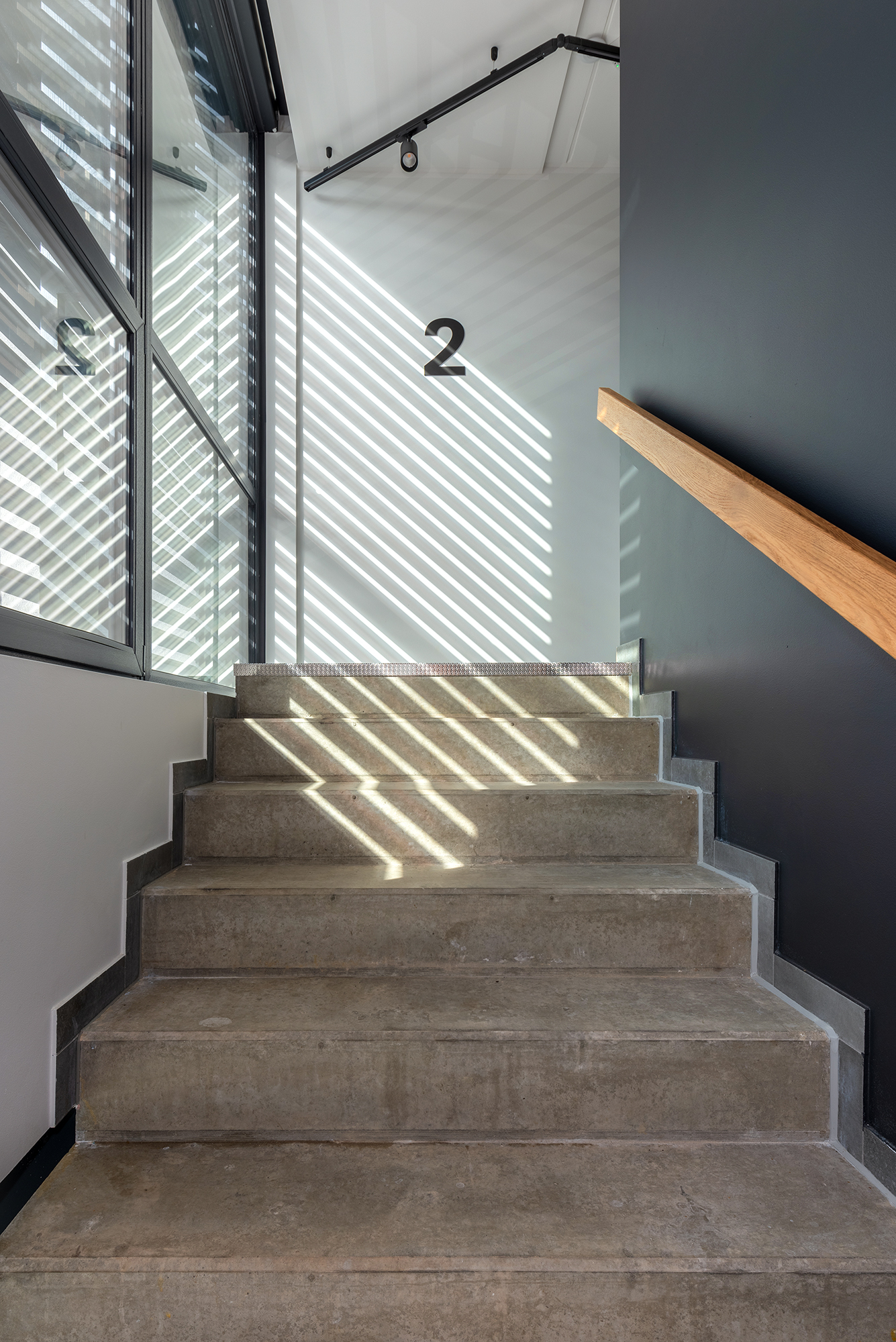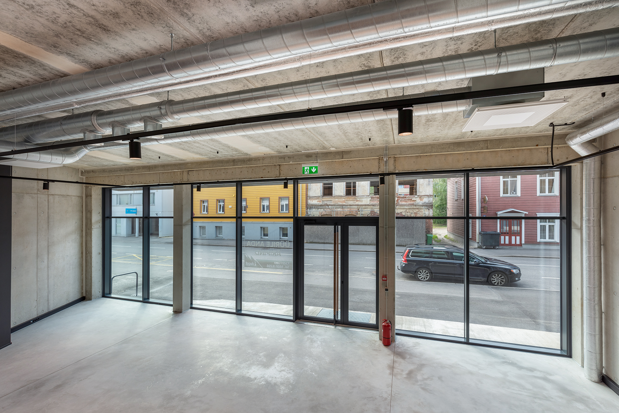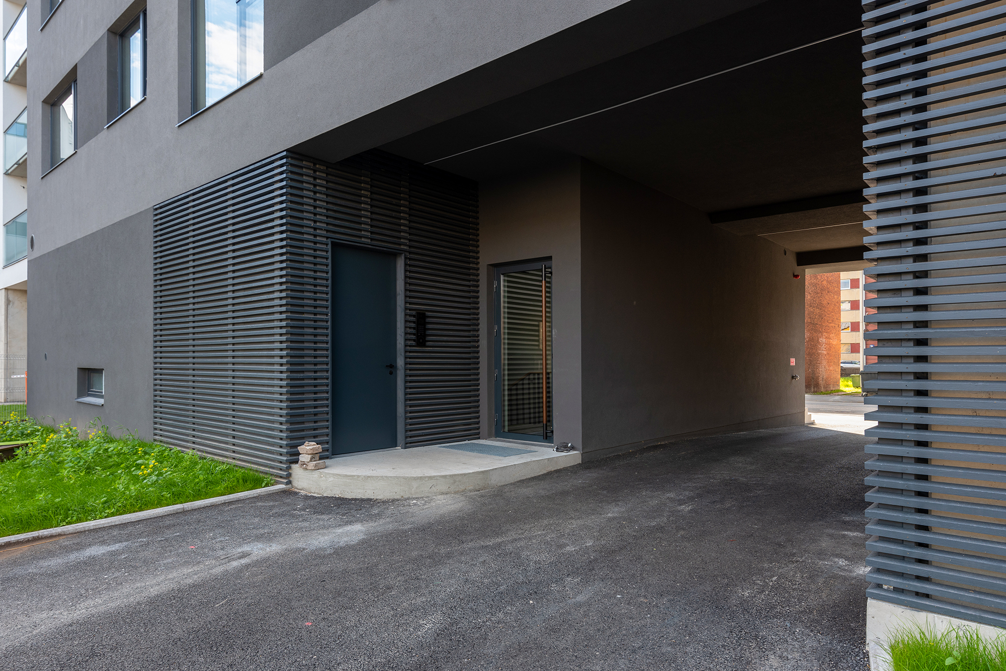 Hoone fassaadil on kombineeritud krohv ja laudis, kortereid eristab büroopindadest esimese korruse avar klaasfassaad. Hoone alt viib läbisõidutee maja taga asuvasse elanike parklasse. Hoone on vaivundamendil, betoonist ning täisbetoneeritud väikeplokist kandekarkassiga ning sisemise äravooluga lamekatusega. Hoone mahus on lahendatud ka soojad ja turvalised panipaigad ning eraldi rattaruum. Hoone katusel asuvad päikesepaneelid.